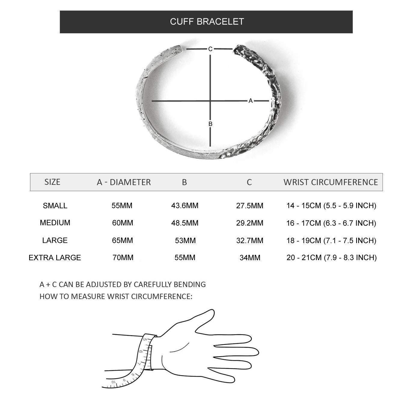There is a cuff size chart on the last slide which also shows you how to find your size to help you find the right fit for you. If any further help or sizes are needed please feel free to reach out.