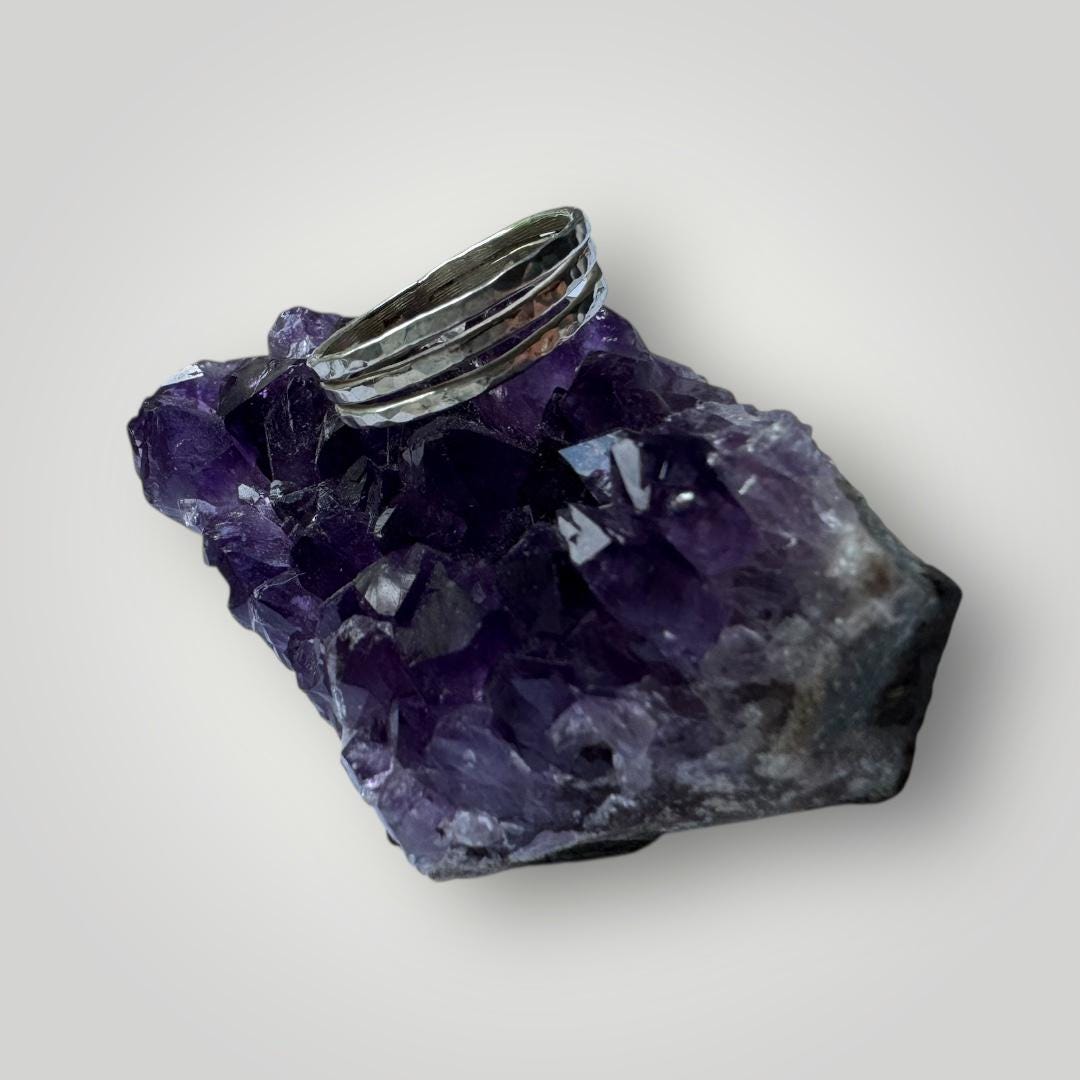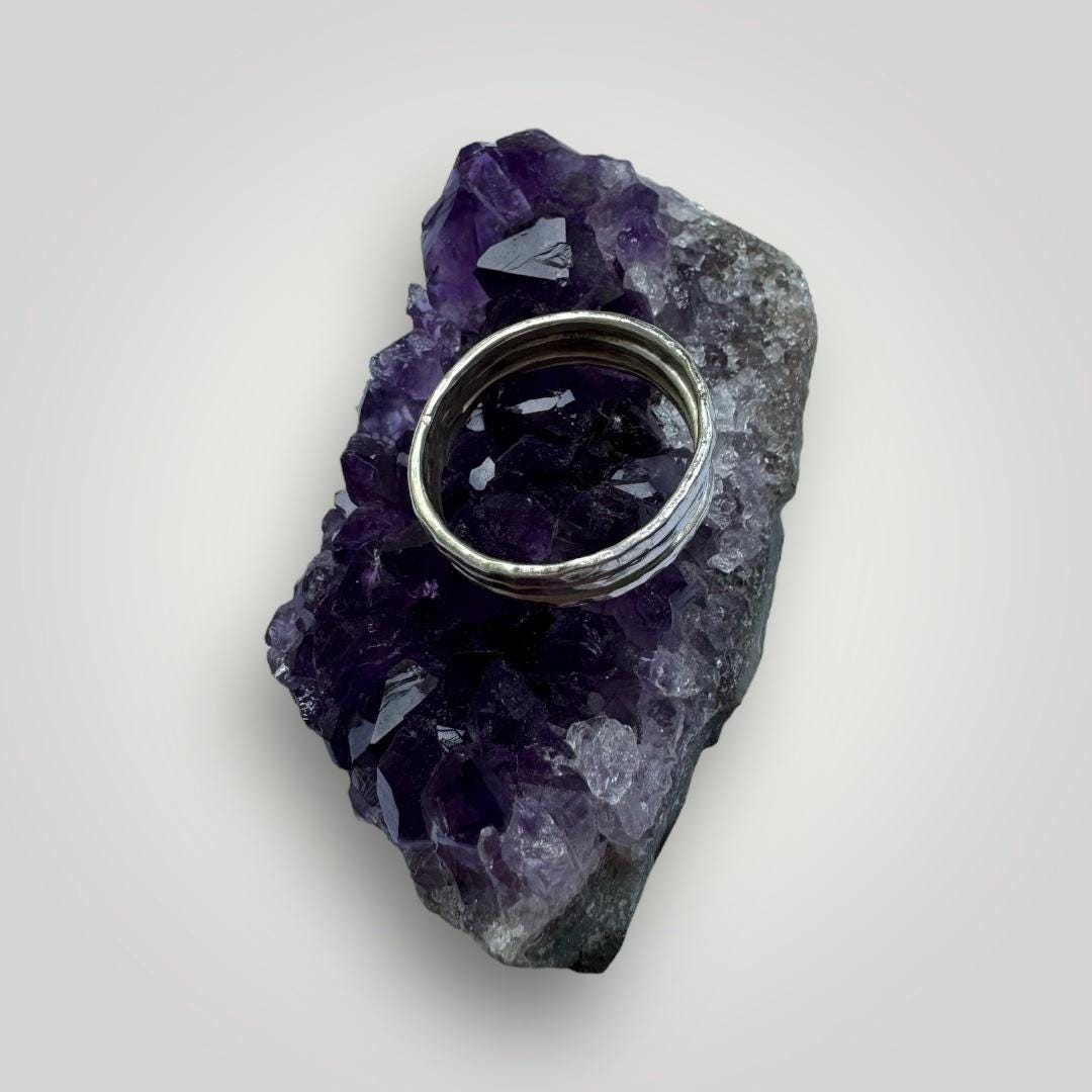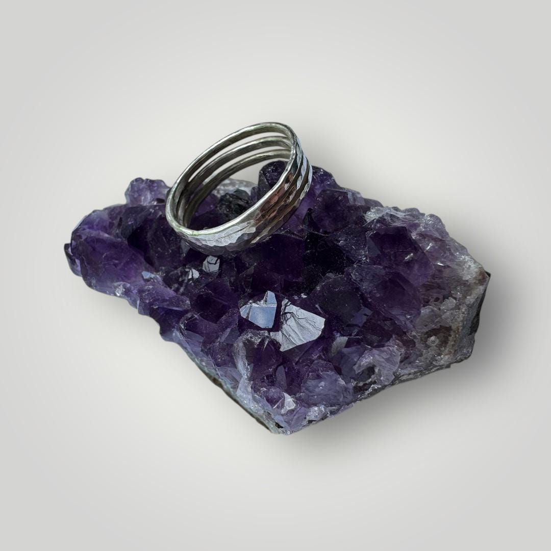 Triple Hammered Sterling Silver Ring | Handmade Stacking Band | Minimalist Textured Ring | Unisex Jewellery